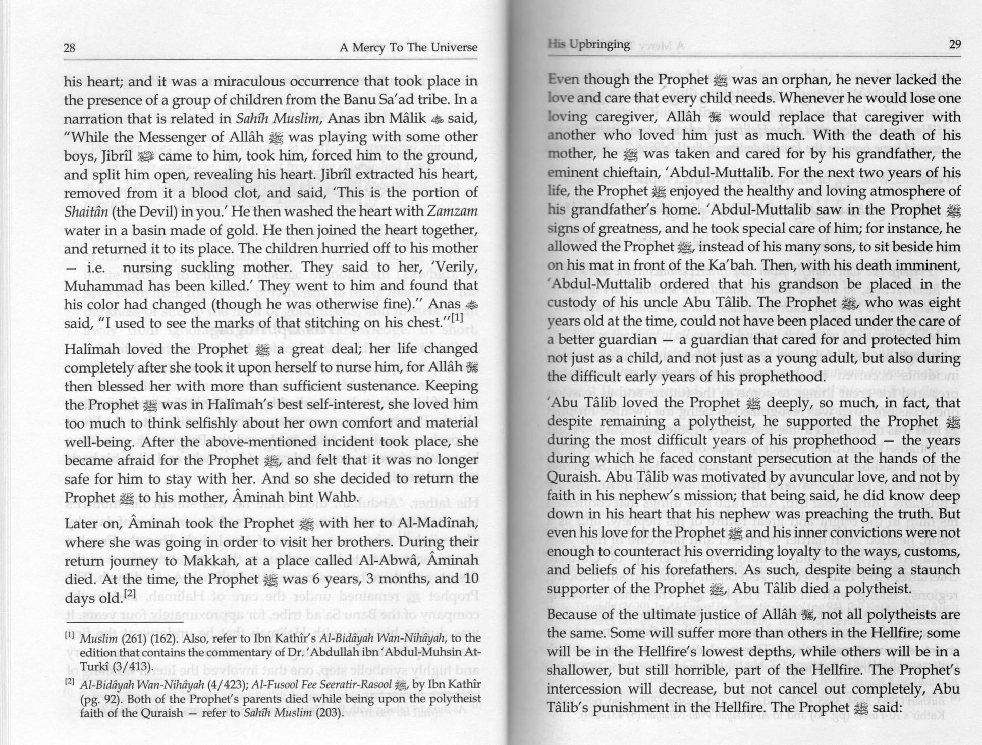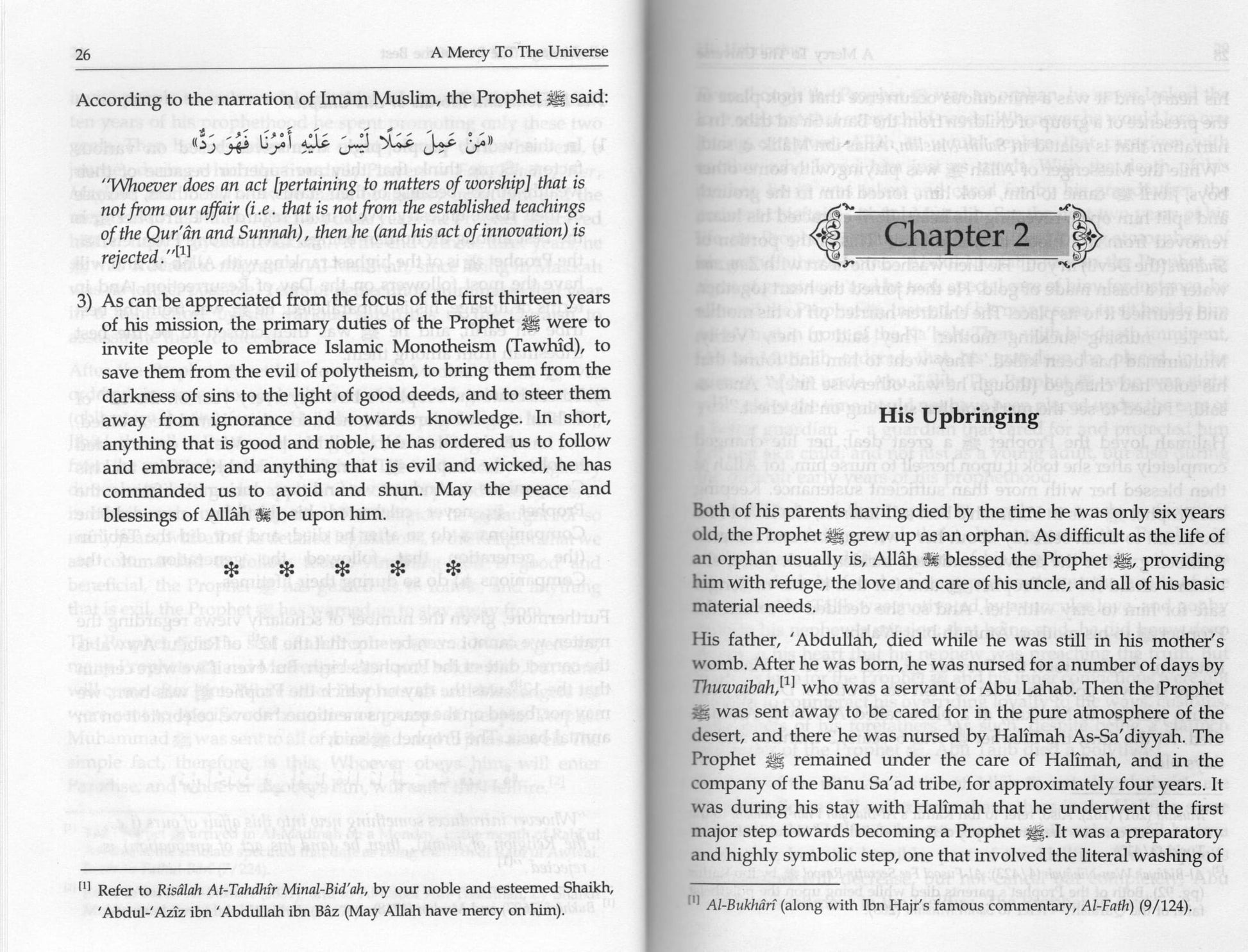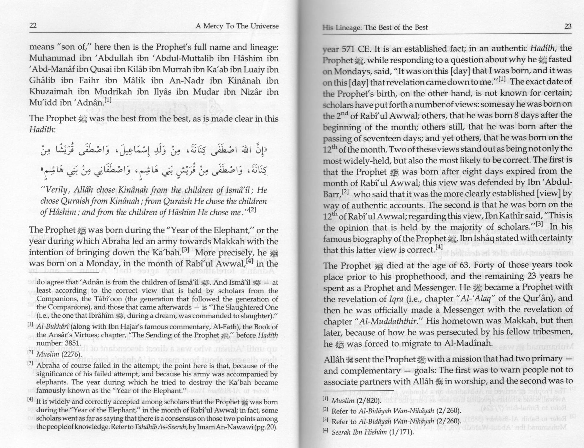 Mercy is clemency and forbearance; mercy is the disposition to forgive or show compassion; mercy means a favor or a blessing; mercy further denotes the qualities of kindness, sympathy, generosity, and beneficence. Suffice is to say that all of these qualities were present in abundance in the character of the Prophet Muhammad صلى الله عليه وسلم. He was a mercy not just to believers, but to disbelievers as well, for he would invite them to come out of darkness and into the light of true guidance. He is a favor and blessing for mankind, not just the Arabs, the people among whom he was sent, but for people of all races and colors. His staunchest enemies became his closest followers when the cloud of blind prejudice was removed from their sight and when they were able, for the very first time, to see with clarity the true nature of the Prophet's character. This book deals with many of the qualities that the Prophet possessed that made him the mercy to everyone. It starts with His perfect lineage, His noble upbringing, and his fully dedicated worship. This book then gives many of the qualities of the Prophet including his generosity, humbleness, bravery, patience, and leadership to name a few. Each chapter includes examples from the life of the Prophet on how he was the perfect living example of that quality. The book ends with the perfection of life of the Prophet with his farewell sermon and even his noble death where he demonstrated some of those qualities as well.