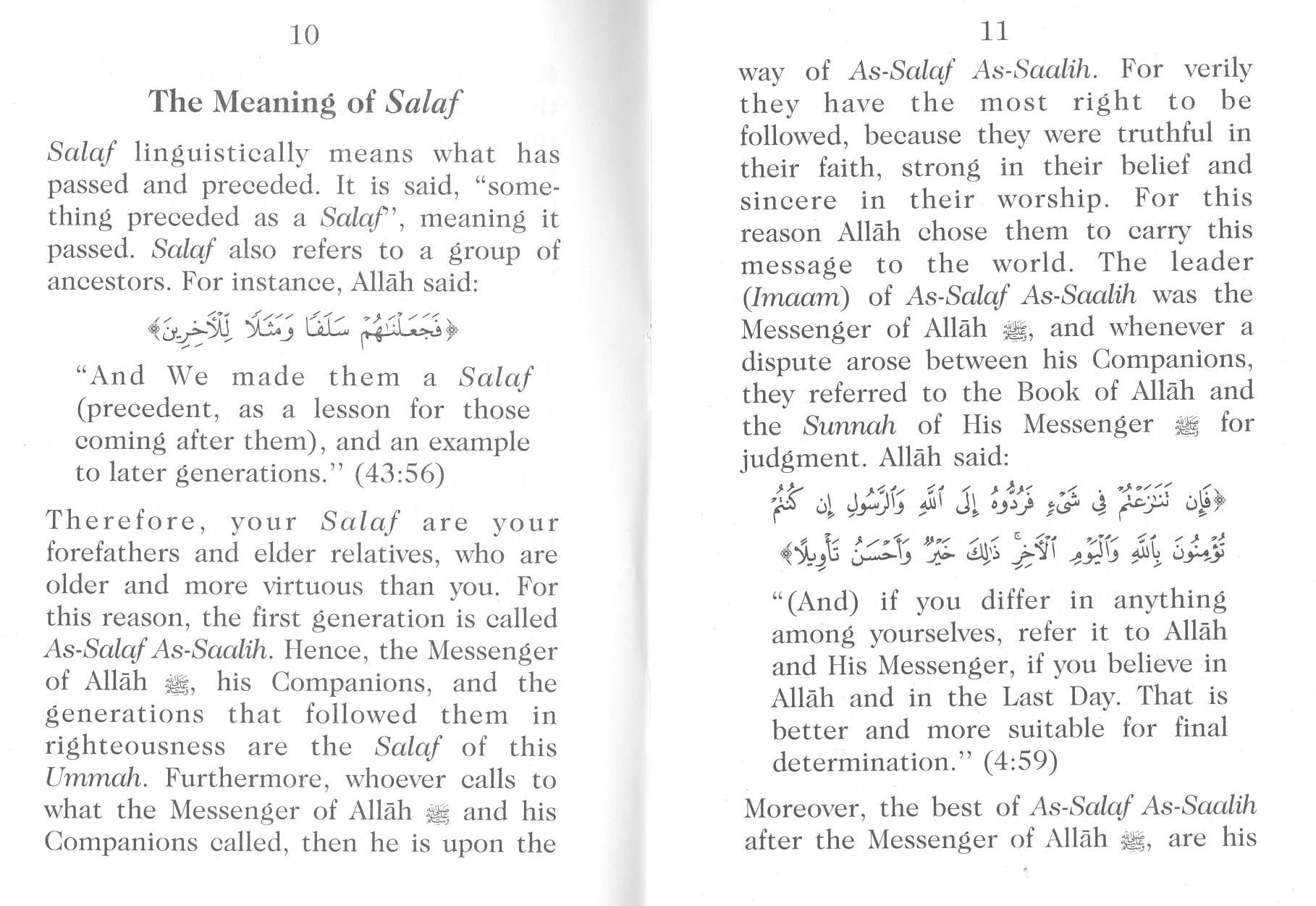 A creed is a set of fundamental beliefs and guiding principles of a religion. A religion or sect differs from another if its beliefs and principles are different. At the present time we find many religions and numerous sects of each religion in this world, while the Creator of this world has prescribed a simple and straight forward religion for us. He sent many Messengers and Prophets to various nations at different times to propagate His Message to mankind. But the people after those Messengers and Prophets changed their beliefs, thus deviating from the original religion. This went on until Allah sent his Last Messenger صلى الله عليه وسلم to mankind. So it is our duty now to guard against deviation from the fundamental beliefs and principles of the only one religion, Islam, that was sent by Allah from the existence of this world. This book clearly defines the creed which the Last Messenger صلى الله عليه وسلم has taught us. We should adhere to this creed to save our religion and to worship Allah according to the correct way which was the way of the Prophet صلى الله عليه وسلم, his Companions, the successors of the Companions, and the followers of the successors. May Allah help us all in this great task which requires our full attention as our whole life has to be spent according to it.