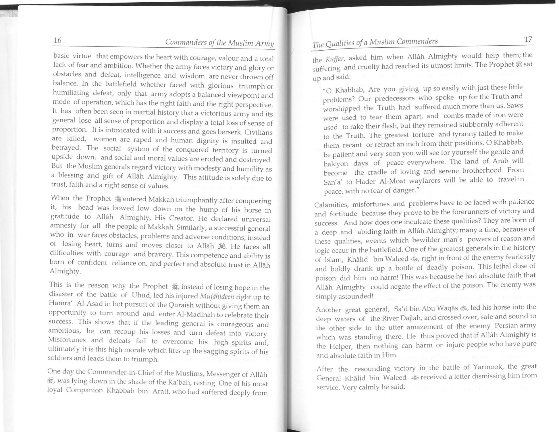 This book is about the lives of those noble companions and commanders who led the Islamic forces in the violent and strife-torn areas of conflict against the Kuffar. They struck terror in the hearts of the enemy and the strong forts and palaces of Caesar and Chosroes trembled before their might. However, in this compilation, there are not only the stories of the battlefields but also the stories of bravery and courage, valor and piety, austerity, and simplicity. These stories describe the true circumstances that led Muslims to fight more powerful enemies than they were at that time.