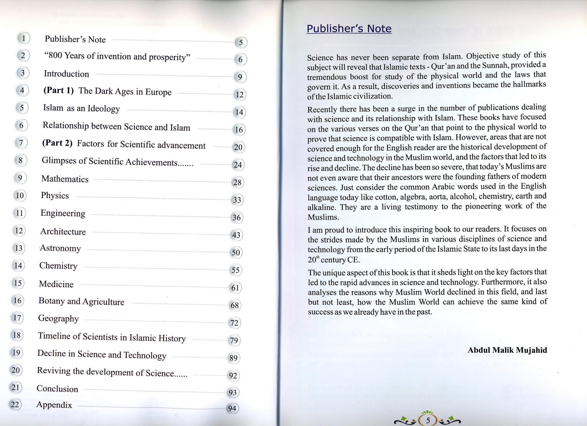 Recently there has been a surge in the number of publications dealing with science and its relationship with Islam. These books have focused on the various verses on the Qur'an that point to the physical world to prove that science is compatible with Islam. However, areas that are not covered enough for the English reader are the historical development of science and technology in the Muslim world, and the factors that led to its rise and decline. The decline has been so severe, that today's Muslims are not even aware that their ancestors were the founding fathers of modern sciences. Just consider the common Arabic words used in the English language today like cotton, algebra, aorta, alcohol, chemistry, earth and alkaline. They are a living testimony to the pioneering work of the Muslims.