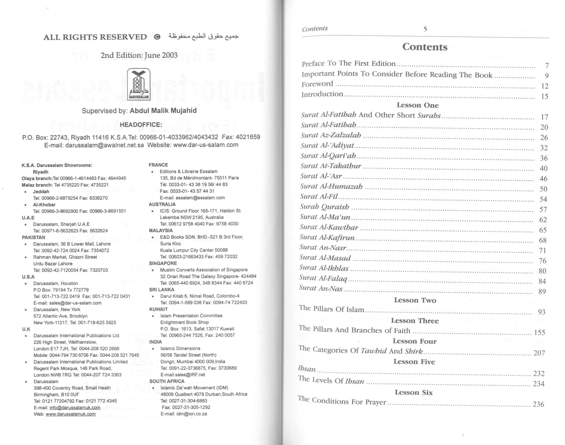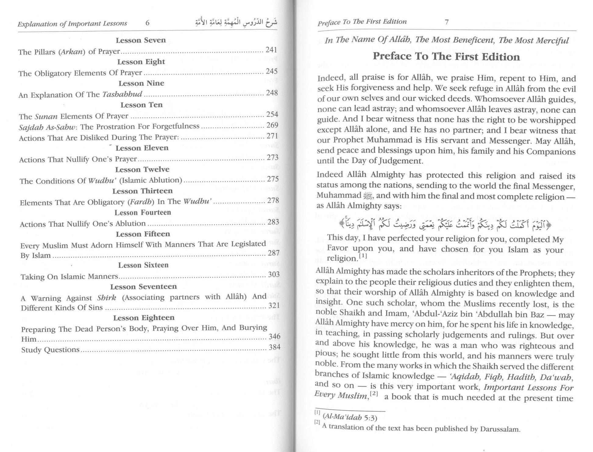 "Explanation of Important Lessons" is a comprehensive guide that illuminates various aspects of Islamic faith and worship, providing clarity and detailed understanding essential for every Muslim. Authored by the esteemed scholar Sheikh Abdul Aziz Abdullah Bin Baz, this 392-page book emphasizes the significance of prayer, supplication, and knowledge in practice. It acts as an enlightening resource for young adults and readers of all ages seeking to deepen their religious observance and moral conduct as prescribed in Islam.
