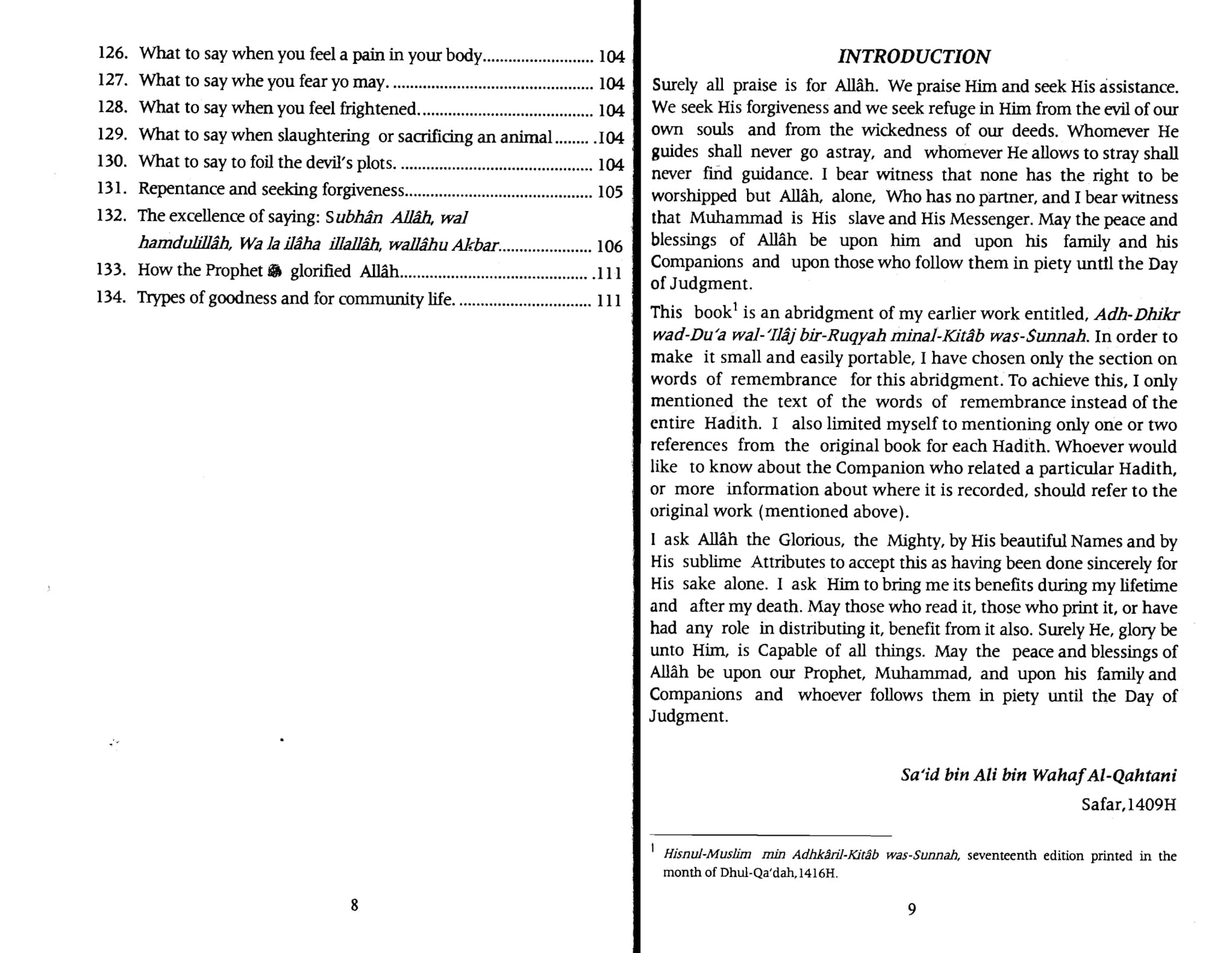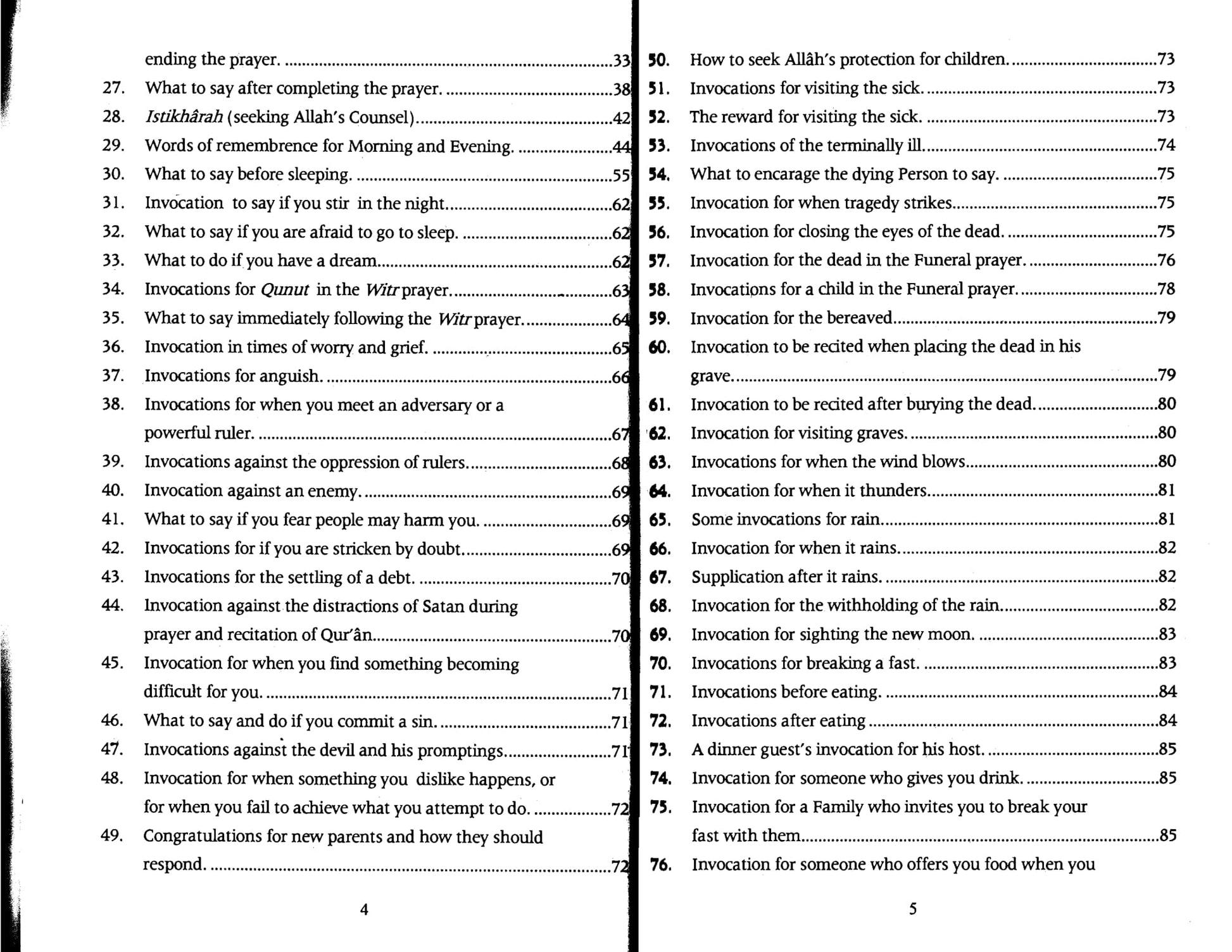 A complication by Saeed bin Ali bin Wahaf Al-Qahtani, Fortress of Muslim is an abridged version of his previous works. Here, he chose to mention only the text of Duas (to be recited/remembered) instead of the entire Hadith. The references list has also been shortened to one or two. In other words, this book provides required spiritual support to Muslim brothers and sisters in performing their daily activities.
