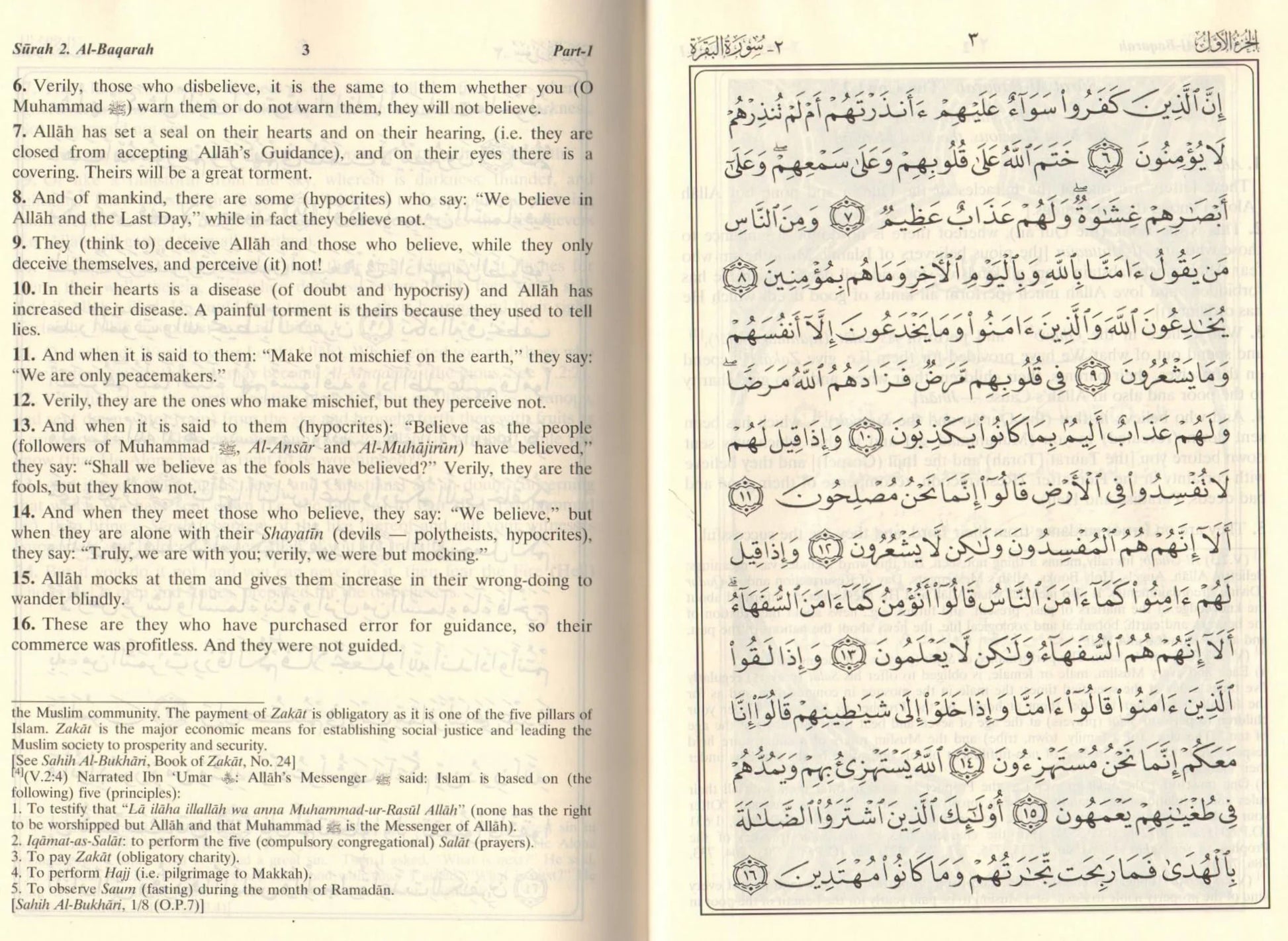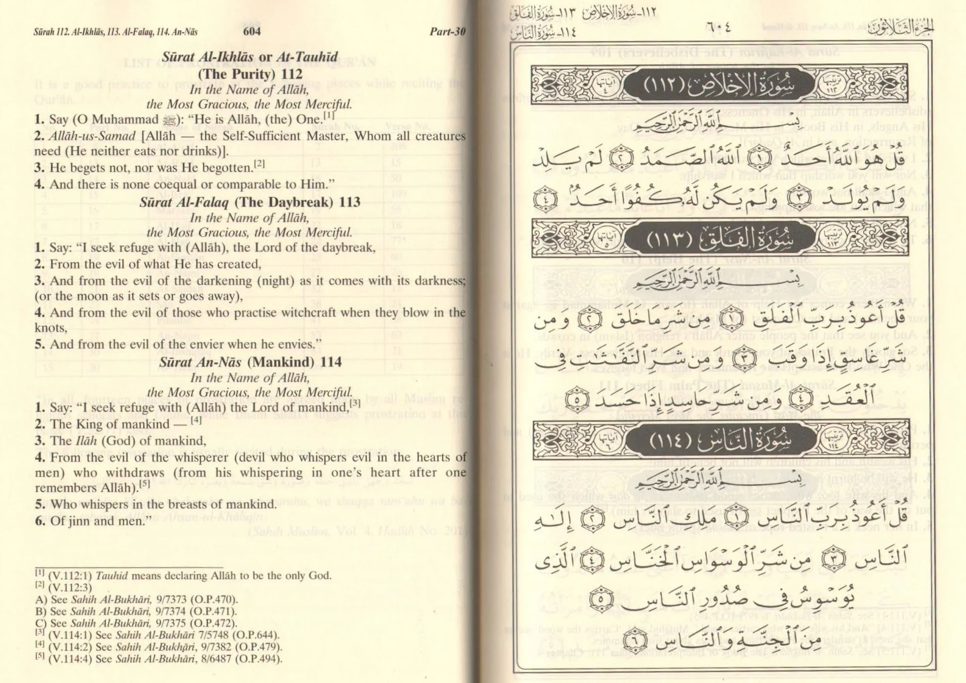 Note: New type of Noble Quran with Arabic Mushaf Uthmani 15 lines/page print on the right side and English translation on the left side of every page. It also includes tafsir footnotes on the bottom of the English page.